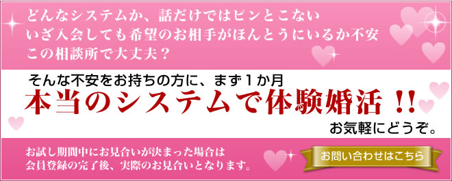 - 色んな人と会って欲しいから、お見合い料無料です。
